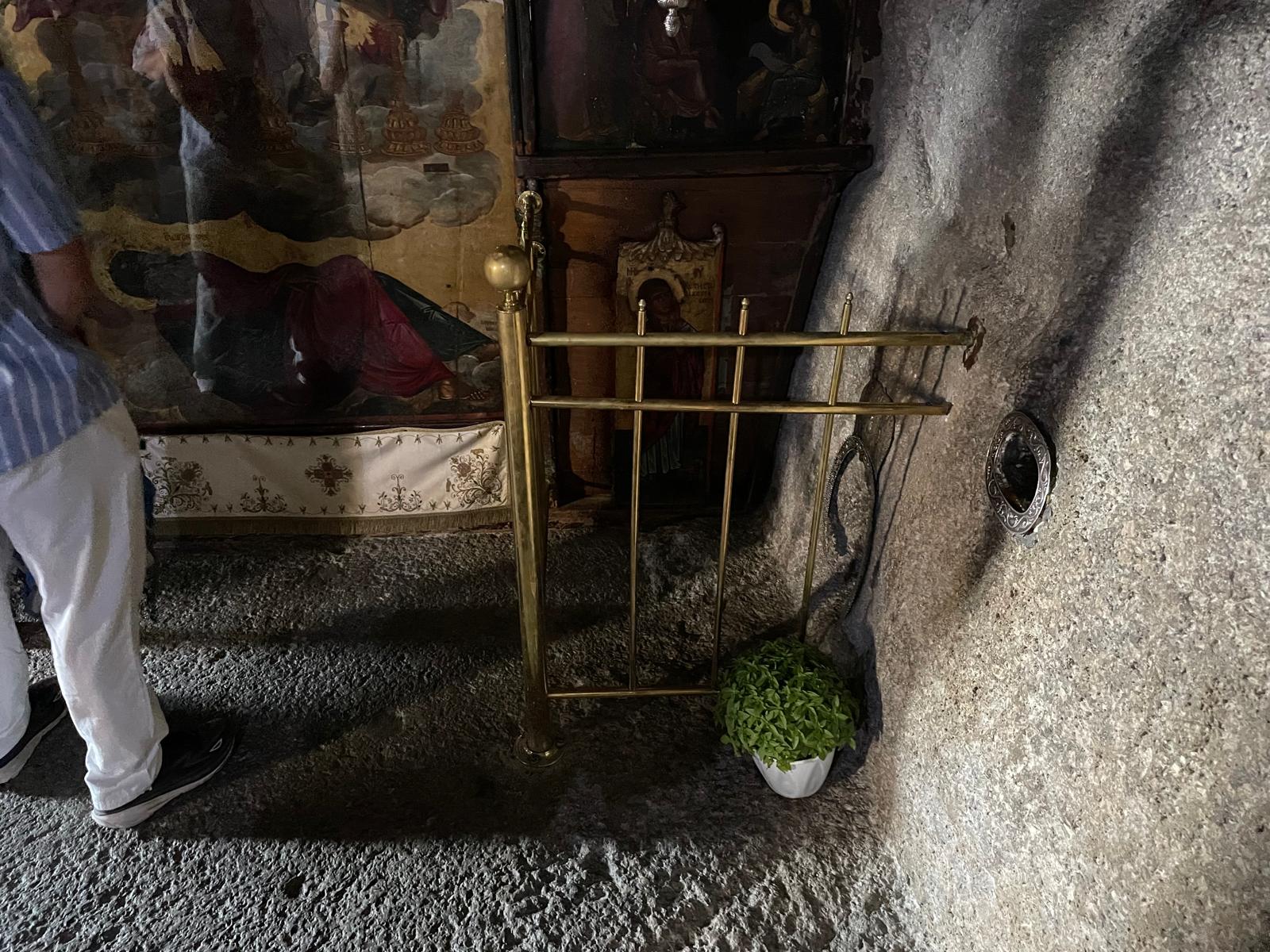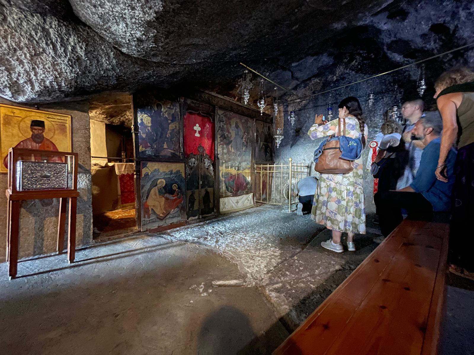 Špilja se nalazi unutar malog samostana koji je otvoren za posjetitelje i ima malu suvenirnicu za one koji žele kupiti pokoju sitnicu. Sama špilja je prenamijenjena u liturgijski prostor istočnog obreda pa ima ikonostas pun ikona i mjesto za paljenje svijeća. Ograđeni dio do ikonostasa je mjesto gdje se sv. Ivan molio. Dvije rupe u kamenu, okovane srebrom, su (ako sam dobro razumio) – jedna veća gdje je naslanjao glavu dok je spavao, a manja je rukohvat za koji se hvatao dok je ustajao.
