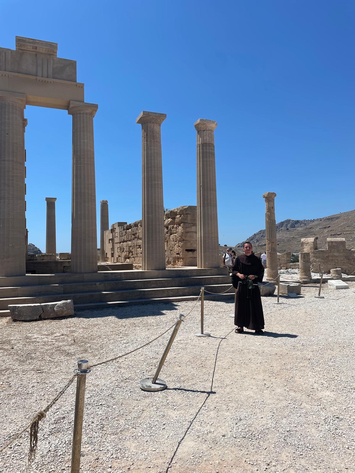 Odazvavši se pozivu fra Johna Lukea Gregoryja, prijatelja i župnika na Rodosu u Grčkoj koji je zatražio našu pastoralnu pomoć, 13. kolovoza 2025. godine krenuo sam avionom iz splitskog aerodroma. U popodnevnim satima stigao sam na Rodos, otok u Egejskom moru.