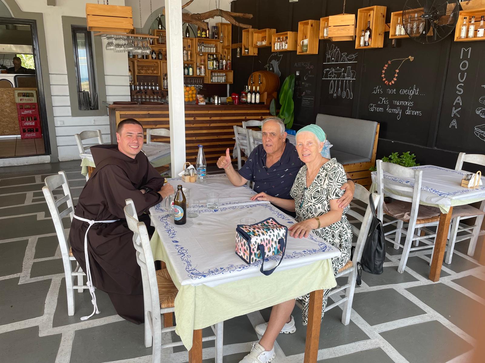 Posebno me je iznenadio automobil koji koristi – stari i izlizani Fiat Tempra iz 1998. godine. Kada smo sjeli u njega da obiđemo grad, bojao sam se da nam neće stati na putu jer su se brzine jedva mijenjale, komandna ploča nije ispravno radila, pokazivač goriva je bio ugašen, a sve je iznutra smrdjelo na benzin. No nije nas bilo briga – unatoč svemu uživali smo u obilasku otoka u tom autiću bez klime, s vjetrom u kosi i cigaretom u ustima. Nakon večere i bratskog druženja vratili smo se u samostan na počinak.