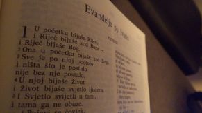 "U početku bijaše Riječ i Riječ bijaše u Boga i Riječ bijaše Bog. Ona bijaše u početku u Boga. Sve postade po njoj i bez nje ne postade ništa. Svemu što postade u njoj bijaše život i život bijaše ljudima svjetlo; i svjetlo u tami svijetli i tama ga ne obuze."