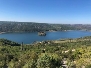 Danas me došao posjetiti fra Josip Cviković i poveo me u posjet otoku Visovac gdje fratri imaju samostan; smješten je usred prekrasne rijeke Krke – idiličan je i divan. Nekada je to bio novicijat reda.